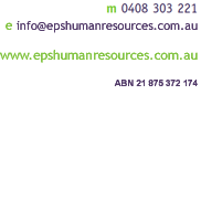EPS is Melbourne based and partners with small to medium sized business that realise the value of their employees. We advocate an open and consultative approach to ensure the seamless integration and acceptance of holistic and effective HR solutions which are designed to support the organisation’s business plan and strategic goals.